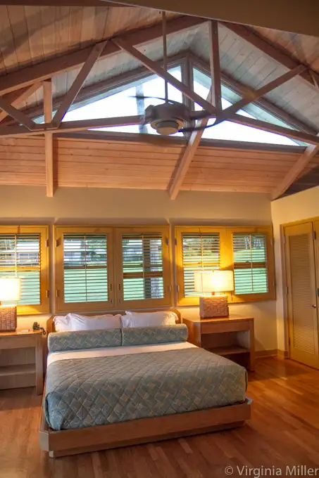 In the cottages, open, airy ceilings, wood floors and firm-soft beds delight — as do all the windows and sliding doors opening on to decks with ocean views.