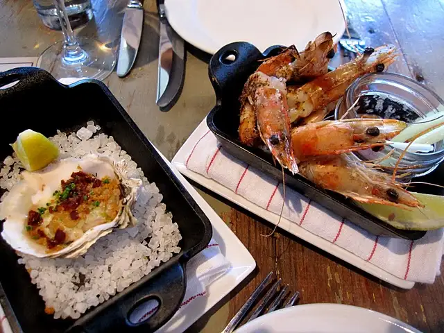 Baked oysters and Spicy Shrimp Cocktail at Marlowe