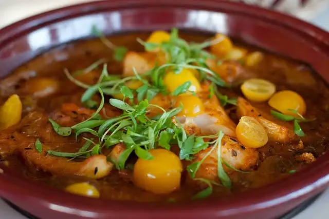 Fairing better is Ahtapot Salata ($16), a Turkish beauty of a dish with plump octopus and calamari, grilled, then sautéed with chile, garlic, herbs and lemon, mixed with red onion, tomatoes, watercress. I tasted harissa-like spices and marveled at the meaty heft of the seafood. On the Moroccan front, they cook a lovely Tajin B’il Hut ($24), served in a proper tajine, with large cuts of Hawaiian blue snapper baked in a wood oven with olives, potatoes, baby onions, preserved lemons and tomatoes (I didn’t taste the lemons). Atop couscous and in a chermoula broth, it’s one of the great tajine dishes in the Bay Area.