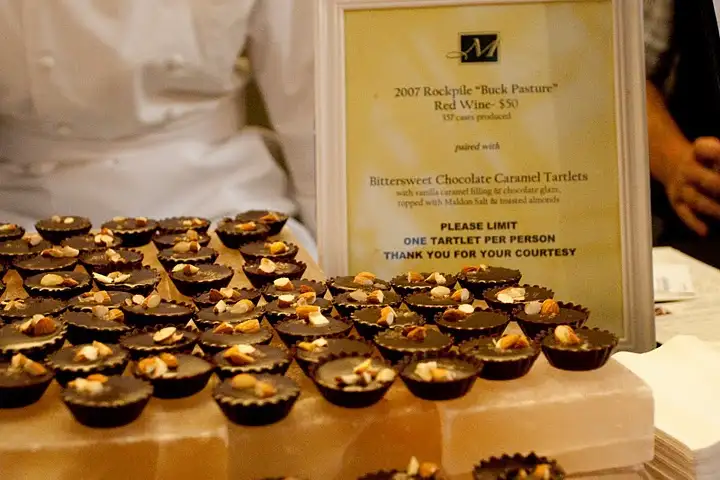 Food was served at every winery (snack/appetizer-sized), in as wide array as some sad-looking fried chicken to a gourmet spread. I’ve long enjoyed Mauritson’s cool wine cave and solid wines, but for this event, none other than chef Charlie Palmer prepared the bites: tender Zinfandel-braised Short Rib Sliders, Panko/Sesame-Crusted Wild Shrimp and Buttered Chocolate Caramel Tartlets.