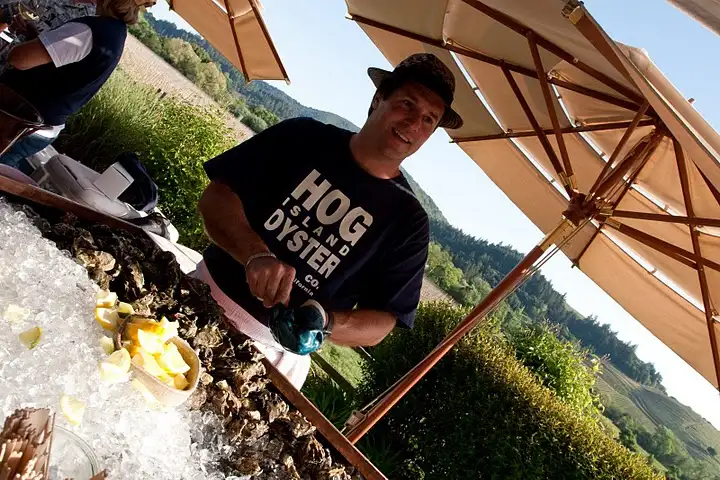 Hand-shucked Hog Island Oysters at Dutcher Crossing after-party