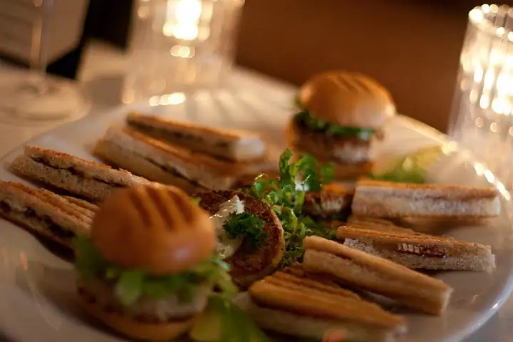 Food is surprisingly tasty, and welcome to settle that bubbly buzz. A “Korhogo 126” Mini-Cheeseburger is cooked with brie, Swiss, American cheeses ($11). Favorite sandwich: Brie/Smoked Duck Breast/Fig Jam ($14). Finishing with strawberries and a mini-dark chocolate fondue (with cinnamon notes) was an obviously ideal pairing.
