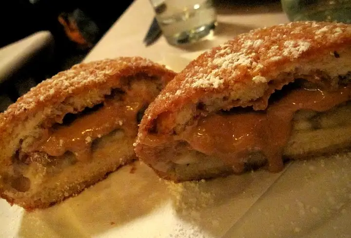 A Fried Peanut Butter & Banana Sandwich ($11) has occasional hints of vanilla and bourbon, on a crusty (bordering on hard), bagel-sized roll stuffed with melting, warm PB & banana. Their popular Oven-Baked Three Cheese Sandwich ($16) with house-smoked ham (and another $2 with egg) is tasty but doesn’t compare to a Tartine Bakery sandwich at a few dollars less. Better in my estimation to skip this one, though I sure adore that dining room.