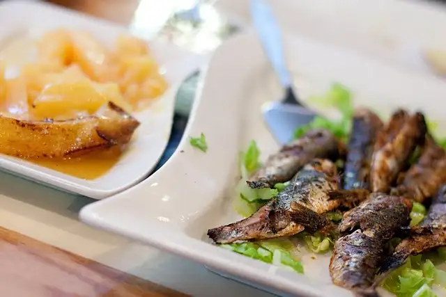 Mythos Beer washed down Grilled Sardines ($14.95) and lemon potatoes (which you can also order as a side), tasting vividly lemony but in an almost unnatural yellow hue. Filet of Sole stuffed with Crab Meat (19.75) was the one ok dish: old school, not the freshest crab, reminding me of the 1950’s style of seafood entrees you find at SF’s Tadich Grill.