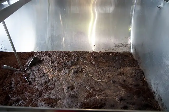 Here are a few photos from my visit as I watched barrels of fresh-ground Weaver’s beans dumped into a massive still, stirred with water while the coffee gained a sumptuous dirt/chocolate look… the smell was invigorating. Alcohol was added as the week progressed, then bottling, and is available for taste and purchase ($50 for 750ml bottle) at the distillery starting this Friday (12/17).