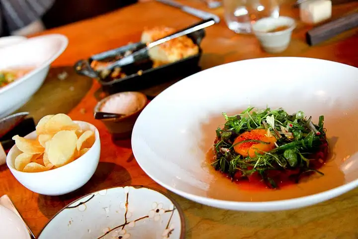 Shimo refers to the term “shimo furi”, meaning frost, which is what they call the snow-like white marbling in a fine cut of beef. This Japanese temple to beef is surprisingly casual, even noisy, for a restaurant so expensive. But in the hands of Douglas Keane, chef of one of the country’s highest-rated restaurants (and a favorite of mine), Cyrus, the food is worthwhile.