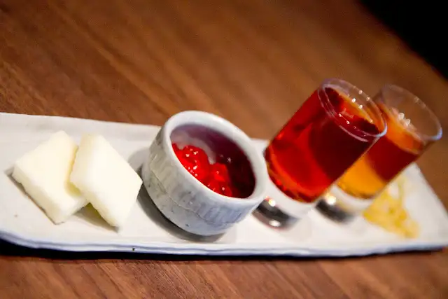 A Self-Serve Sazerac ($10) is as fun as it sounds: deconstructed and waiting for you to ingest any way you find desirable – mixed together or taken separately. A shot of Rittenhouse 100 Rye pairs with an absinthe marshmallow and lemon zest, while Peychaud’s Bitters jelly is truly inspired.