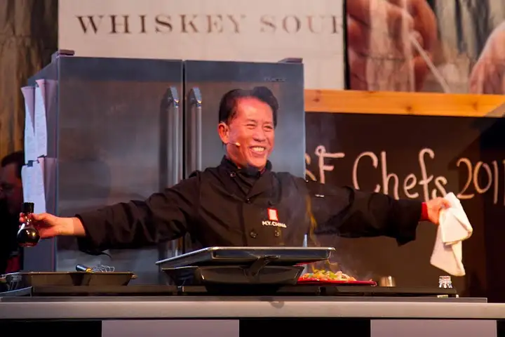 As usual, Martin Yan charms the crowd during a cooking demo in Grand Tasting Tent