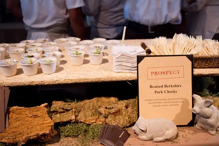 No surprise: Chef Ravi Kapur of Prospect pleases with braised Berkshire pork cheeks contrasted by grapes, preserved orange, shaved radish, ancient grains, torpedo onions
