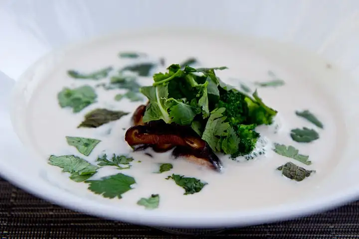 What Solbar brings to Calistoga is truly cosmopolitan cooking. Whereas JoLe is the warmer welcome of the two, Solbar has a leg up on consistently excellent, often creative dishes. Lemon lime soup ($12) is certainly Tom Kha Gai-inspired with lemongrass, lime leaf, jasmine rice, coconut milk, broccoli florets, but its citrus tart is brighter than typical in the classic Thai soup. Dollarhide Ranch peaches ($15) are served with Italian staple San Danielle prosciutto. Charred onions add on s a sweet, smoked layer, while lavender honey Parmesan mousse elevates nuance in what could be a common dish. Instead, it expresses the glories of Summer.