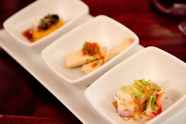 With Cheryl’s Tasting ($18), however, chef Matt Spector illumines his possibility. The trio plate recalls the types of East-meets-West seafood dishes I’ve had at Ame in San Francisco. Three mini-dishes of lobster, uni and cuttlefish (the latter in the form of custard) are steal at $18 for such gourmet, painstaking bites.