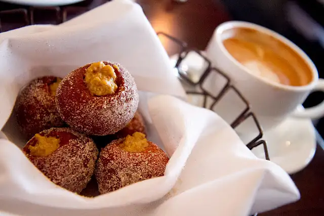 In keeping with the delights available for dinner, the fairly recent addition of Sunday brunch offers joys beyond mere scrambles and pancakes. While it’s still Fall, do yourself a favor and order their cinnamon and spice-dusted donuts ($9) filled with a blessedly less-than-sweet pumpkin pie cream. Five to a basket, these warm rounds of fall goodness disappeared from my table quickly. One hopes they will change the filling seasonally, keeping these on the menu.
