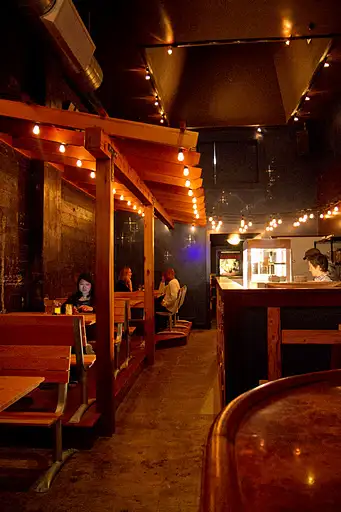 Hotsy Totsy encourages lingering with friends under pressed tin ceilings, rocking out to excellent tunes hand-selected by staff. Funky ’70’s garage sale paintings line the walls and hilariously creepy movies (like For Your Height Only starring Weng Weng) play silently on the flat screen, add to the edgy, blissfully divey, convivial spirit.