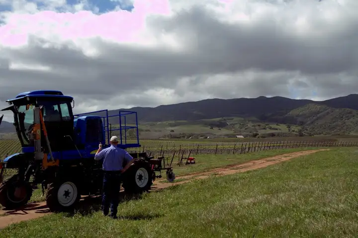 After landing on Carmel Road’s expansive grounds, we road this tractor to a pinot tasting tent among the vines