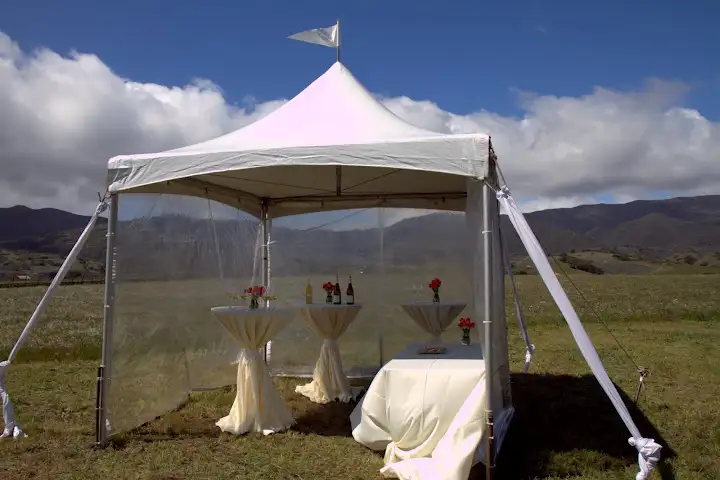Carmel Road riesling tasting tent waiting as our helicopter landed