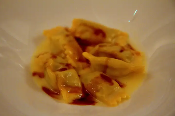 THE best course of the Italian Love Affair Dinner: Chef Michael White’s (of Marea, NYC) agnolotti filed with duck liver & guinea hen in rich foie gras sauce