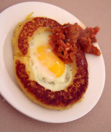 Chef Douglas Rodriguez (Alma de Cuba, Miami) serves a Sunday Grand Tasting favorite: egg baked inside a pupusa-like corn patty