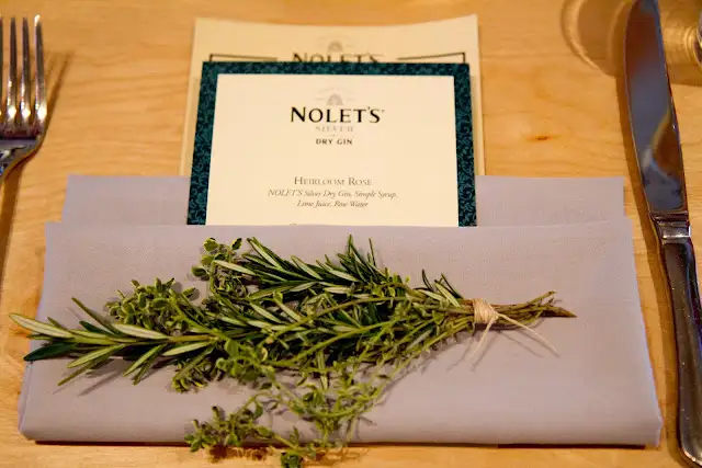 NOLET’S Silver Gin is unique, sweet, floral gin with botanicals including Turkish rose, peach, raspberry… I recently attended a private dinner with Carl H.J. Nolet, Jr., who owns the distillery with his father, Carolus and brother, Bob. We dined at one of San Francisco’s best new restaurants in SF, AQ, complete with cocktails from AQ’s stellar bartending crew, like the Contemporarian, mixing NOLET, chamomile peach tea, citric acid and simple syrup.