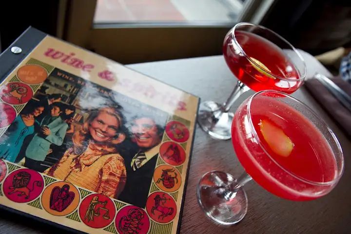 You could call Root Down hipster, and it is, with spacious, funky rooms lined with brightly colored vintage telephones and Esther Williams’ era swimming photos. I hit up brunch where pitchers ($28/$8 glass) of The Hummingbird (St. Germain, sparkling water, Cava brut) flow alongside coffees from fine local coffee roaster, Novo. Besides coffee, I went for Beet Down # 2 ($11), a rosy pink cocktail, which I wished tasted more like beets. Instead, you taste the gin (London dry), Aperol, Domaine Canton ginger liqueur, lemon and mint. A Cardamom gin fizz ($10) likewise would have benefited from a strong hit of cardamom with Plymouth gin, lime, cream. Both are better conceptually than in execution, though the base recipes could be great. They barrel age Last Words and Martinis, a generally playful, if not overwhelming, cocktail list.