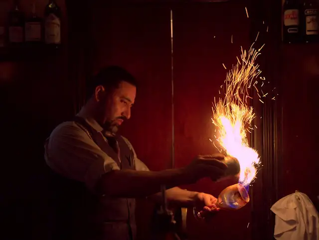 Raoul flames Spanish Coffees at Absinthe