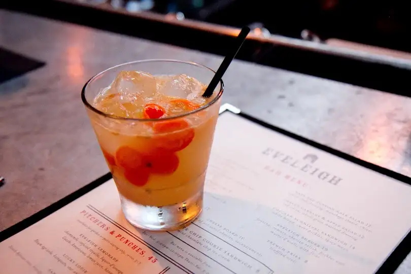 Grutman upgrades dive bar favorites with quality ingredients, as with the Formosa Sour ($9), essentially an improved Midori Sour made from her house Midori liqueur: French honeydew, sugar, orange flower water and lychees with a hint of green food coloring to maintain the neon spirit of the junk food liqueur. Start with an aperitif of The Seven Year Itch ($10), referencing Marilyn Monroe’s potato chips and champagne scene in the film – they go one step further serving housemade chips with a cocktail of bubbles, Cynar, sugar, cherry liqueur and lemon. A perfect finish is Joan Crawford’s Chained ($9), essentially a Sherry Flip with Harvey’s Bristol Cream, Punt e Mes sweet vermouth, garnished with cinnamon. Creamy and savory, it’s dessert.
