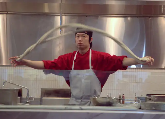 Noodle pulling as spectacle at M.Y. China