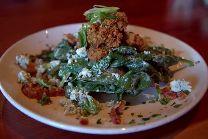 I must admit my expectations were not high. Nola cuisine, and certainly po boys, are often a poor shadow of what they are in the Big Easy. But Parish Café’s po boys are blessedly authentic and among the best in the West. The bread, made by family members at nearby Costeaux French Bakery, is appropriately crusty and soft. Fried oysters and shrimp are plump, delicately fried and sauces and toppings plentiful. Gumbo may not be the ultimate, but it’s solidly done with a dark, rich roux and Andouille sausage. Cornmeal fried oyster salad ($11) is freshly gratifying over heaping spinach leaves, bleu cheese crumbles, bacon and buttermilk vinaigrette. Parish is a welcome addition to downtown Healdsburg and one of the best lunch options in town.