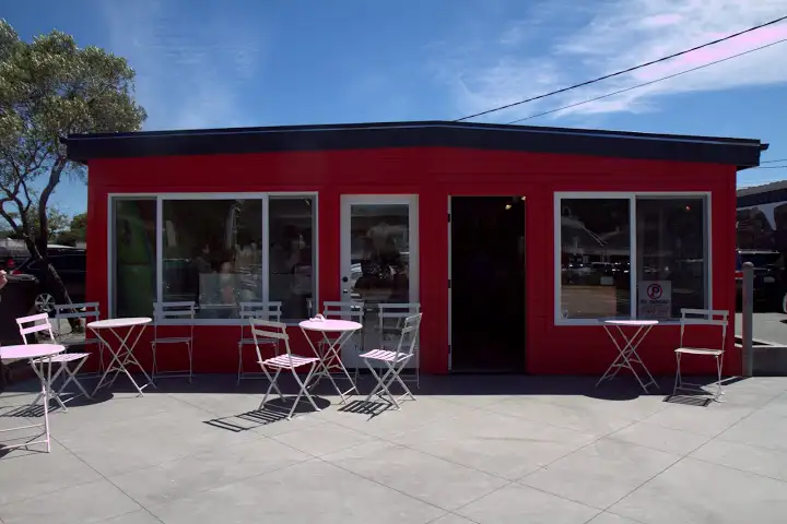The light-filled, airy cafe is lined with surfboards. Front and back patios are surrounded by greenery from SF’s Flora Grubb Gardens, in a space designed by Boor Bridges Architecture. Making a statement in Equator’s signature red, the building stands out on a busy Mill Valley road across the street from chains like Starbucks and Subway. Proof Lab is a unique community center of classes and activities for youth alongside shops in an alternative retail model. There’s a surf shop, indoor skate ramp, a garden of 100% native California plants, biodiesel fill-up station, music and art labs, a natural backdrop to the Equator cafe.