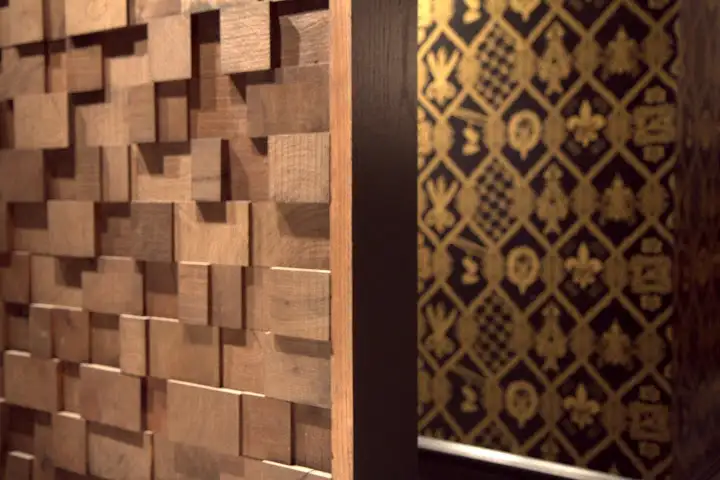 Specially designed wall paper around the space (look closely for cheeky designs on the back wall and in the bathrooms)