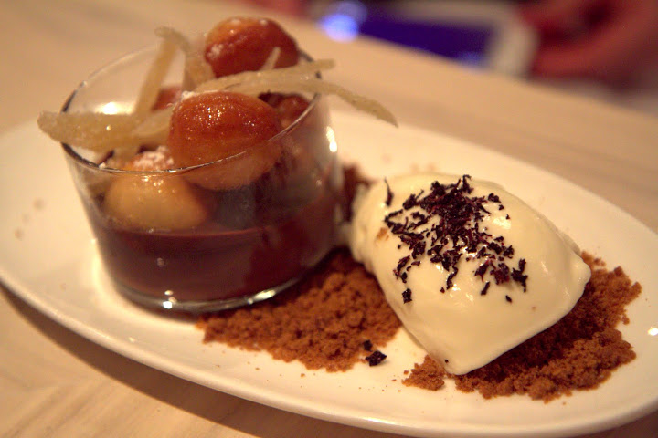 A kale and grilled fennel salad ($9) assuages the need for greens, perked up with pickled orange segments, shallots and fried chèvre cheese in orange-lavender vinaigrette. Sticky mushroom risotto ($18) under shaved black truffle was a far cry from the perfect texture of authentic Italian risotto. Maple bourbon chicken over pancakes ($22) is another example of the chef at the time, Patrick McCandless’, fun-loving touch, even if the surrounding mishmash of pearl onions, spinach, walnuts, ham crisps and bacon powder felt disjointed (note: the chef is now Mark Ford – with a turnover of two chefs since my three meals here in March, I’m concerned for the current quality level).