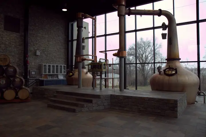 Snowy, grey March countryside in Bourbon CountryBuffalo Trace, maker of Evan Williams, Pappy Van Winkle, etc.Mist & rain cast a spell over the Buffalo Trace groundsBuffalo Trace log cabins dot the grounds, going back to 200+ yearsElmer T. Lee Clubhouse, built in 1935, named after the legendary master distillerFront porch rocking chairs of the Elmer T. Lee ClubhouseDrinking with Pappy: tasting Single Oak Project barrels with Buffalo Trace’s Master Distiller Harlen Wheatley in Frankfort, KYTasting various barrels from Buffalo Trace’s Single Oak Project with Master Distiller Harlen Wheatley in the Master Distillers RoomTraditional alembic still at Limestone Branch Distillery in Lebanon, KYLimestone Branch is run by gracious brothers, Steve & Paul Beam (yes, related to THAT Beam)Limestone Branch produces award-winning moon & sugar shineVisiting KBD (Kentucky Bourbon Distillers), home of Willett, Rowan’s Creek, Noah’s Mill, Johnny Drum, etc.Storing barrels at KBDWillett Rye barrels at KBDWillett Master Distiller, Drew KulsveenOpen air fermentation in process at KBDKBD’s beautiful copper stillIn Bardstown: rickhouses of Heaven Hill distilleryThe many brands made at Heaven HillBarrels of Bernheim Original at Heaven HillTasting room inside a giant barrel at Heaven HillTasting newcomers & rarities at Heaven HillHeaven Hill’s extensive bottling linesOld school copper pot still over open flame at Barrel House Distillery in LexingtonCozy Barrel House tasting room where they distill rum, bourbon, moonshine, vodkaVisiting Alltech’s Town Branch distillery in LexingtonAlltech’s immaculate whiskey distilling space
