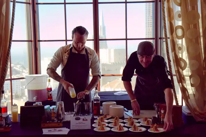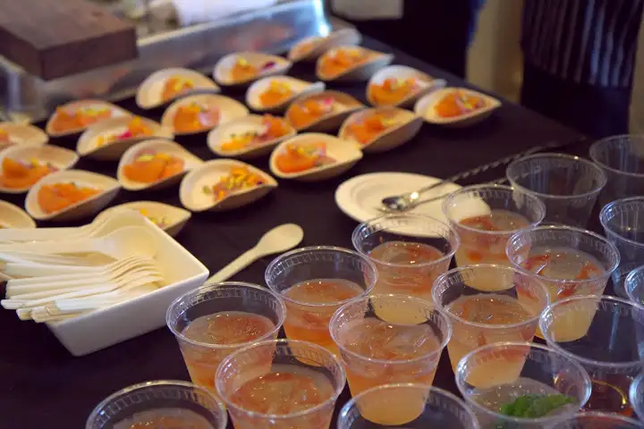 In past years, the cocktail portion has been stronger with local bars representing SF’s long-established cocktail culture throughout the tent. This year, 8/1 atop the Westin was meant to be the cocktail and bites-focused night. Real estate has become too valuable in the tent, so besides Elixir, pulling out all the stops with a changing menu of five different cocktails during each Grand Tasting, and cocktail catering/consultants, Ananas and Rye on the Road, cocktails during the Grand Tastings were all brand-sponsored, with cocktails made by local bartenders.