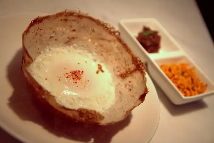 Most importantly, the food is consistently innovative, even exciting. Certainly some dishes shine more than others but I’ve not had a bad dish and a number of them border on revelatory. The signature dish is already apparent: the hopper ($9), a Sri Lankan street food dish akin to a crepe (made of coconut milk, rice flour) shaped as a bowl with an organic, soft-cooked jidori egg in the center, weaving seamlessly into the crepe. There’s ground coconut, chiles, lime and spicy sambal sauce to sprinkle over or tear off and dip the crepe in. It’s unique, simple yet complex, delicate in taste.