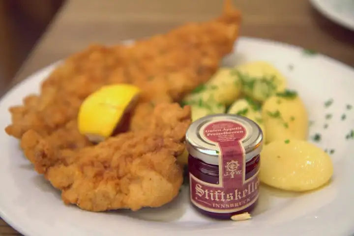 At Stiftskeller Innsbruck, the beers are basic but platters of sausages, sauerkraut and a range of hearty dumplings made from the likes of spinach, comfort. Best of all, it is set in multi-room halls and a beer garden that feel plucked from medieval days. It’s an idyllic, Germanic, beer hall meal.