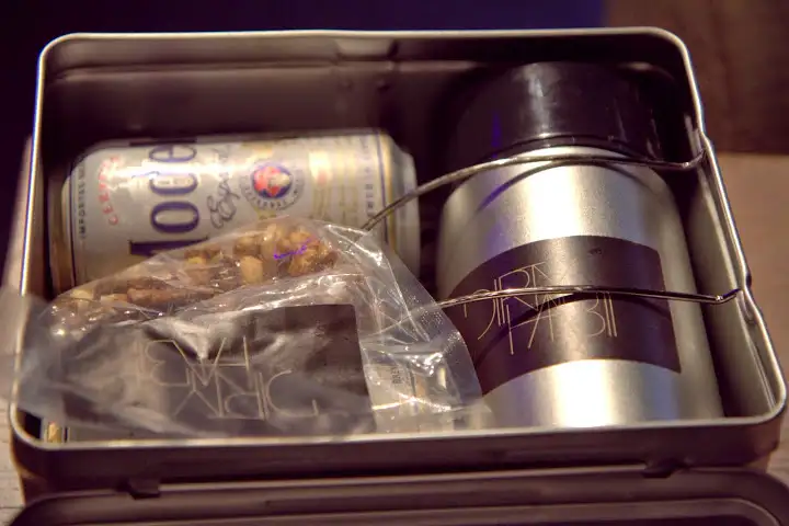 Get Me A Juicebox! ($24): order your own Dirty Habit lunchbox, complete with a can of PBR beer (or, in this case, Negro Modelo), house bar nuts and a hot toddy cocktail in a thermos