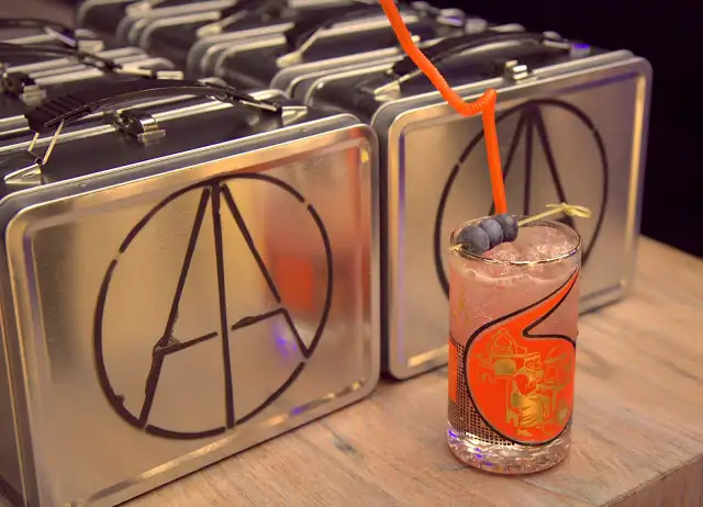 In front of Dirty Habit lunchboxes is the Ludovico Technique ($13): Absolut Vodka, blueberry, Dry Madeira, lemon, verjus, sipped from a bendy straw with notes of green grass, dried grapes and blueberry