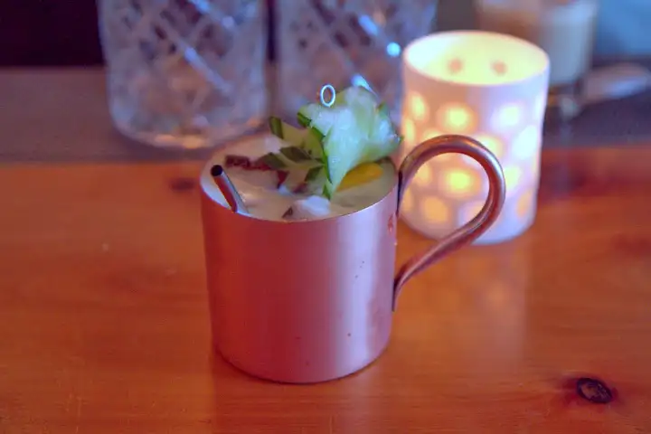 After trying the entire initial cocktail menu, there are a number of standouts, the first being a surprising combination of wine and genever. It’s actually a genius combination: bartender Keli Rivers played with Heidelberg Cup No. 9, an 1869 recipe from Cooling Cups & Dainty Drinks to get the elements just right. Diep 9 Belgian Genever, a house lemon cordial and Nahe Austrian Riesling combine over crushed ice for a dry, malty, stimulating drink, like a Cobbler cocktail born in Austria and Belgium.