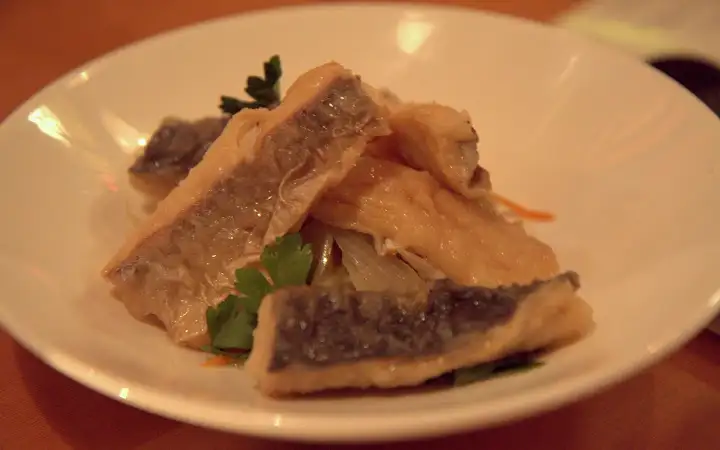 BIWA is a bustling izakaya with a basement dining room that serves food till midnight every night, fusing Korean and other cuisines and flavors into Japanese pub fare. There’s a number of enjoyable small plates but it’s all about the room temperature, pickled mackerel. Bright, pickled, briny and delicious, it accompanies the array of sakes beautifully.