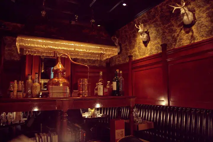 Bar Benfiddich is utterly transporting, feeling like a colonial tavern from the 1700s hidden upstairs in an office building, all rustic wood and brick, dim with a Colonial-era painting illuminated behind the bar. Best of all, bar master Benfiddich is a wizard with cocktails and making his own spirits, steeping botanicals on the spot from an ancient book of distilling with recipes he’ll point out to you. Alongside an impressive absinthe collection, he also makes his own absinthe — and if you ask for his house root beer, be prepared to be wowed.