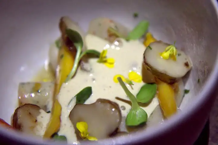 I’ve missed Aaron London’s cooking since Ubuntu days in Napa. All the national acclaim he received during that time was confirmed again upon my first visit to his new SF restaurant, AL’s Place, in the Mission. While there are many highlights, a dish of torn bits of black cod ($17) roasted with black lime powder is a revelation. Bright wedges of grapefruit and slivers of kumquat surround the cod, while an earthy sunchoke curry, lively with kaffir lime, pops and sings, making an unforgettable impression. More on a range of standout dishes and drinks during opening week at AL’s Place in my Zagat First Look here.