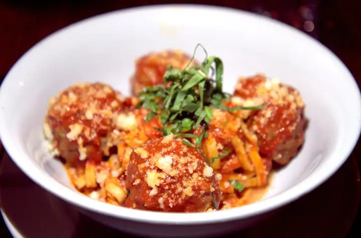 Florio has long been a Fillmore neighborhood favorite for French bistro classics and Italian comfort dishes. Looking like a movie set bistro, its dark wood exterior and brightly-colored awning has always had a romance to it. Though the space called to me, the food hasn’t for a long while. Now, with new executive chef Colin Dewey, who just came on in the last few weeks, there is a fresh focus to the food, leaning decidedly Italian (more on his menu in my Zagat article). It’s his handmade pastas that steal the show, rustic and classic, gratifying and elegant. It’s hard to choose one and I cover a few here, but if I had to, it’s meatballs ($14/19) with house made tagliolini pasta in a perfect marinara sauce and grated Grana Padano cheese — with a glass of Chianti Classico — that truly comfort the Sicilian in me.