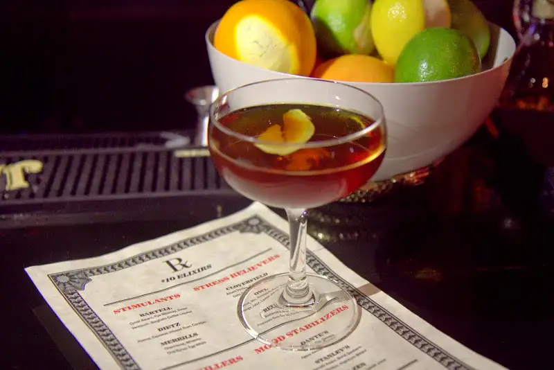 Trocadero Club, an intimate schnaps bar (a concept which I’ve long hoped for but with limited access to/exportation — and the high cost of — the best schnaps in Austria, is not fully possible), turned into Rx, an amaro-focused bar, at the end of 2014. Rx is heavy on the herbaceous and bitter Italian liqueurs many of us love so. Grouped in welcome categories like Mood Stabilizers and Stress Relievers, the cocktails ($10) often (but don’t only) feature amaro and are pleasantly bracing or refreshing by turns. I particularly like the Bartell, a combination of rye whiskey, sweet vermouth, Cynar Amaro for a lush bitterness and St. George NoLa Coffee Liqueur imparting complex, earthy elegance.