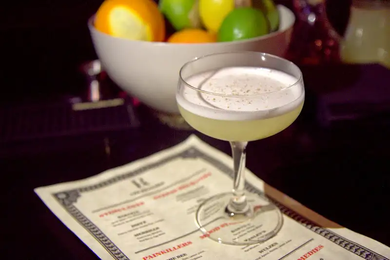 But forced to narrow down, I’d name two: the BK (named after bartender Brett Katsuyama) is like a classic gimlet but showing off shiso, that aromatic Japanese herb in the mint family. Louie has infused gin with fresh shiso, then mixed it with matcha green tea and lime. Perfection. A visual beauty, KS (named after bartender Kirsty Short) goes down easy, like a breezy island vacation for the sophisticated palate. Denizen white rum, coconut, banana and OJ are combined with Louie’s fresh Vitamix-ed parsley purée and Amontillado sherry. Though lush and tropical, the drink is far from sweet, with a striking, dry finish, thanks to the sherry. It’s the ideal beach-y drink for those who hate the concept.