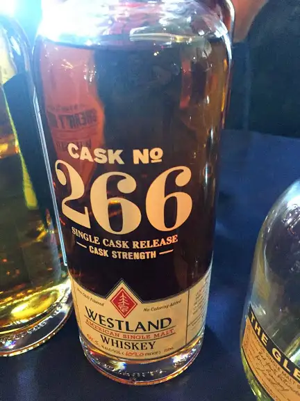 I told you about Westland Distillery in Seattle early last year, arguably the best single malt whiskey (reminiscent of Scotch) being made in the US right now. I’ve tried a number of their single cask bottlings over the last year or so, and this year’s WoW pour included a robust Cask No. 266, redolent of earthy dark chocolate and orange. It was another striking cigar pairing.