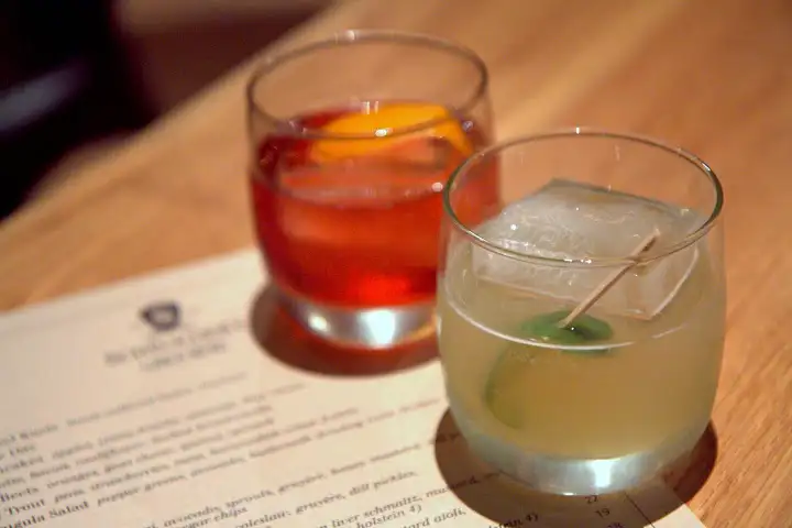 While ever-wonderful Ice Cream Bar is about — you guessed it — ice cream, their one-of-a-kind soda fountain is the highlight, not just serving historic soda fountain drinks and creative, boozy drinks, but also straight up cocktails. The recent addition of The Cappellettis is a happy one. The bitter-sweet notes of Aperitivo Cappelletti and the floral/herbaceous/bitter Elisir Novasalus Amaro are lively with lime juice, house juniper tincture and soda. Perfect for adults while the kids eat their sundaes.