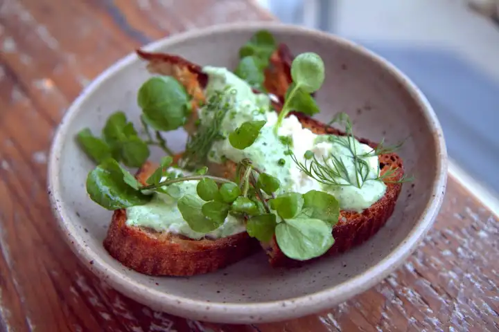 Funny enough, my favorite initial dish is toast ($5). The toppings change but the base is none other than Josey Baker levain so you already know it’s excellent. Spread with warm ricotta, charred spring onion puree and accented by fresh watercress leaves, it almost dissolves in the mouth, leaving you wanting more.