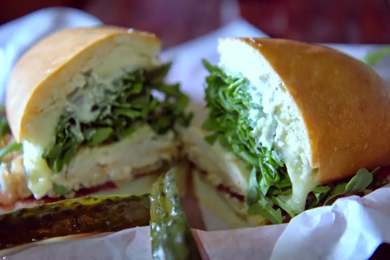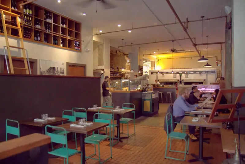 Relaxed Noir Lounge, where classic films play in the back room at night and cocktails and wine flow, is by day an ideal work space, playing classic rock tunes and vintage couches to sink into. Best of all, from 8 AM-2:30 PM every weekday, the Lunchpad menu turns out killer sandwiches that are among the most underrated in town. With an emphasis on thinly shaved turkey sandwiches, there are many worthy choices. I was impressed recently with one of the daily specials with cheeky names, the Juan Bon Jovi, on the menu every Tuesday: roasted turkey, habanero candied bacon, brie cheese, arugula, roasted pear and horseradish cream (here’s more under-the-radar and new weekday lunch spots in one of my Zagat articles).