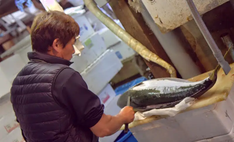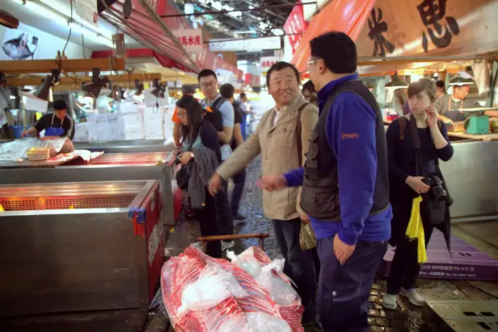 Thankfully, we experienced the market in its longtime, original location before it moves much further out of Tokyo’s city center in a couple years (more on that here). With our own tour guide from the market, Ken-san discussed best cuts and new seafood arrivals and chose fish for his restaurants back home in the Bay Area. He explained rare fish and cuts to us and discussed the differences in the grades and quality level of the most in-demand fish, namely tuna.