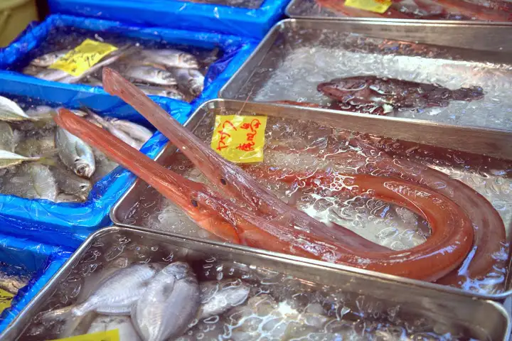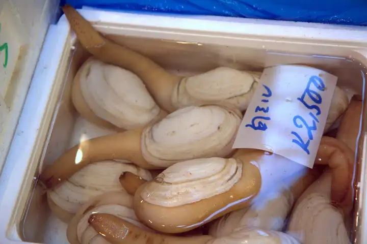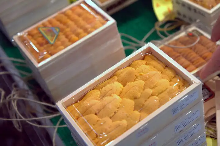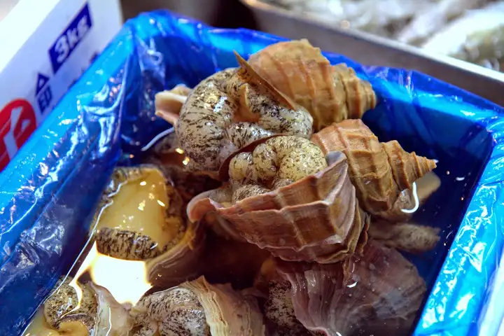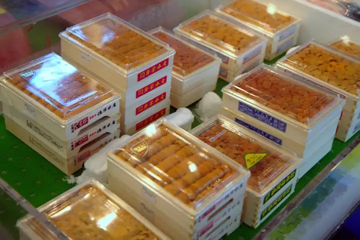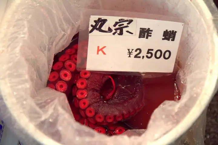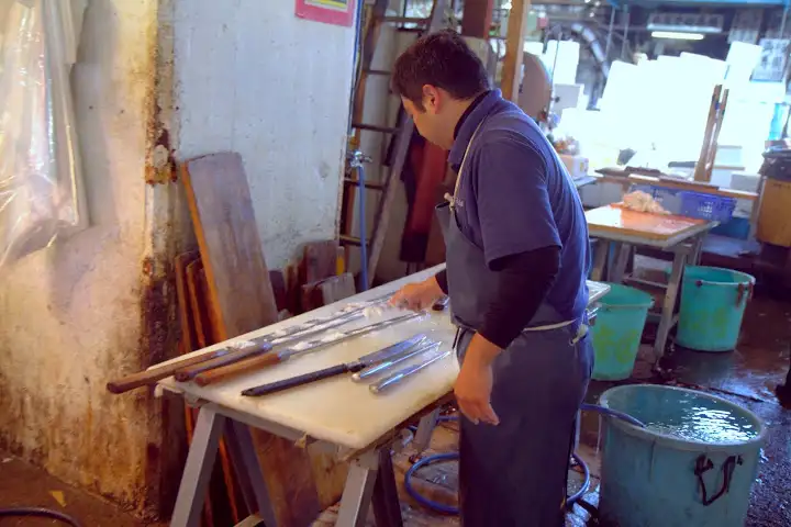 Dodging trucks and trolleys whizzing by at alarming speeds makes the market more dangerous than I envisioned, especially as it’s easy to be mesmerized by the wondrous mountains of fish and shellfish around you and not pay attention to what’s happening in the massive but extremely crowded space. The outside markets surrounding the inside fish market are filled with produce and kitchen product vendors, including a couple popular sources for Japanese knives.