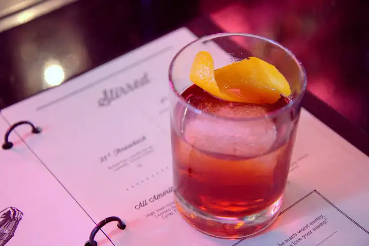 [From my July 6 Zagat Summer Cocktails article]: The legendary, 100-year-old Cafe Du Nord just reopened June 17, completely remodeled with a new food-and-drink menu from Ne Timeas Restaurant Group and The Bon Vivants. The atmospheric basement space is still dim and relaxed, sporting tables, a long bar and more corners for lingering over lovely drinks from Morgan Schick, the mastermind behind Trick Dog‘s cocktails. Named after one of our great parks (and the site of famed and free summer concerts), the easy-to-drink Stern Grove starts with Appleton Rum and Tariquet VS Armagnac, and layers in caraway flavor from Kummel, java-tinged notes from the coffee tincture and tart, smoky fruit from smoked pineapple and lime.4. The Double Standard’s Rabbit Hole